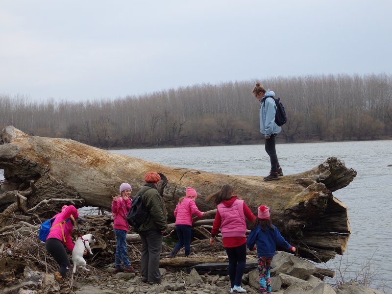 A két társaság az Ártéri Tanösvény legnagyobb esőbejárójánál találkozott. Együtt sétáltak a régi gyümölcsöstől a madárvártáig, majd a Duna partjáig.