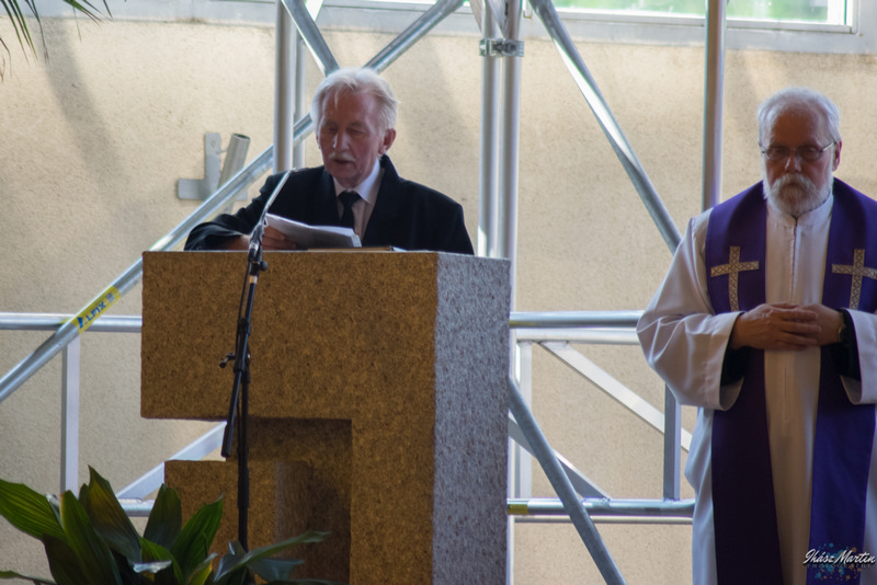 Az egyházközség részéről Dr. Szép László világi elnök mondott gyászbeszédet. Visszaemlékezésében kiemelte a Templom és Iskolaépítő Alapítvány létrehozásának jelentőségét és a „templomépítő” pap áldozatvállalását. Záró gondolatával kifejezete a közösség együttérzését a rokonság iránt: