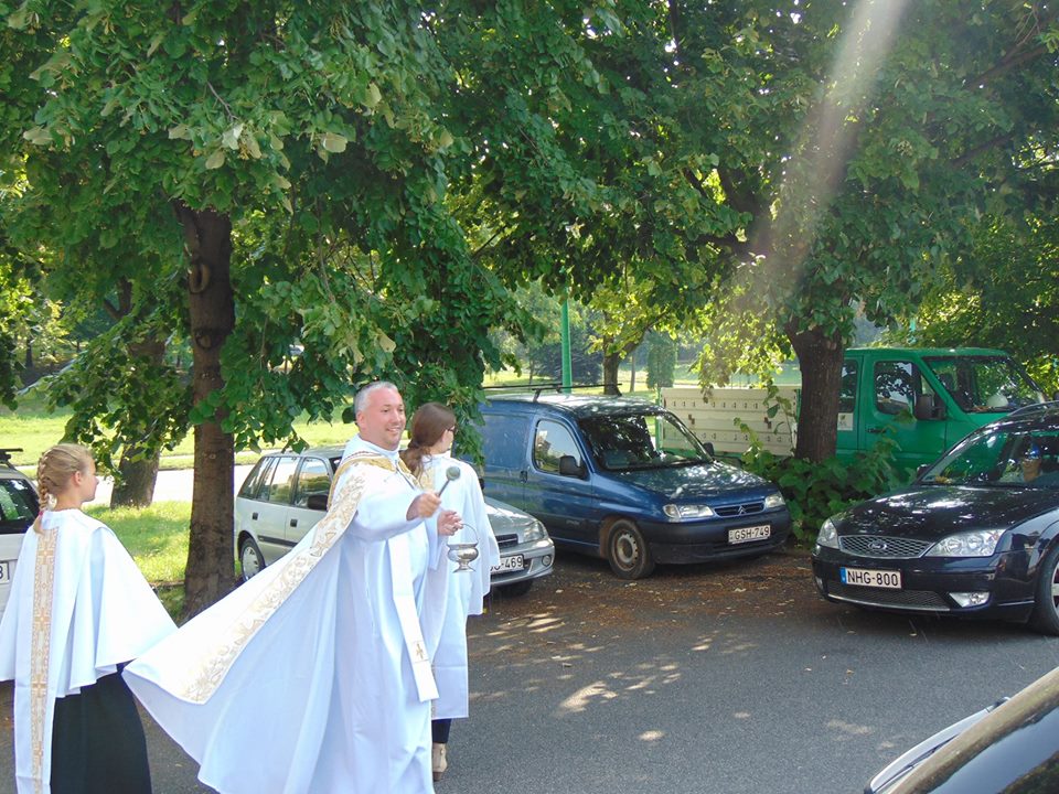 A Dunaújvárosi Egyházközségben Szent Kristóf ünnepén 2016. július. 24-én, járműveket áldottak meg az atyák.