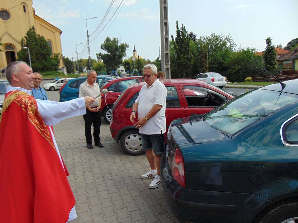 A Dunaújvárosi Egyházközségben Szent Kristóf ünnepén 2016. július. 24-én, járműveket áldottak meg az atyák.