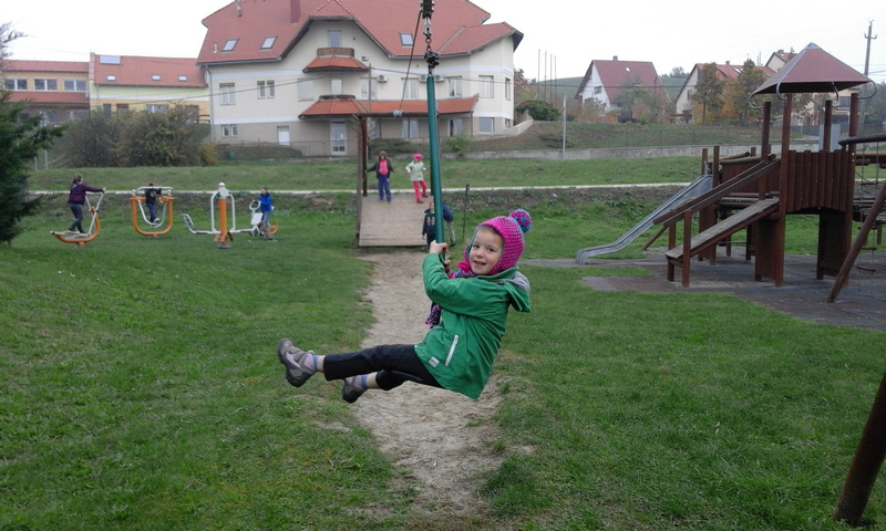 Remekül sikerült a sukorói játszótéren tartott közel egy órás tízórai szünet. A gyermekek és néhány felnőtt is önfeledt, vidám játékba kezdett. Öröm volt nézni, ahogy a gyermekek segítettek egymásnak felmászni egy-egy játékszerre.
