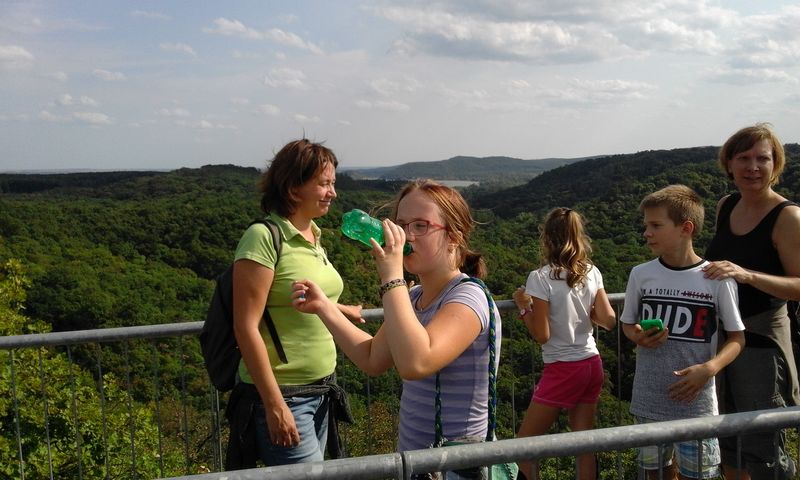 Az elmélkedésre javasolt gondolatok: a Köszönöm Uram…., Bocsátsd meg Uram! s Ígérem Uram…. voltak. A csatolt fotó tanúsága szerint a gyermekek áhítattal és elmélyülten ténylegesen zarándokoltak. Az út legnehezebb szakasza következett az új Károlyi kilátóhoz és onnan leereszkedve a Gaja–szurdokba. Érdekesség volt, hogy a kilátó tetejéből jól látható volt zarándoklatunk végpontja, a Fehérvárcsurgói Víztározó túlsó vége. A lefelé meredek, köves és keskeny szakaszon mindenki egymást segítve sikeresen leért, mely útszakasz egyben lecke is volt a gyermekeknek, mert alig van fontosabb egy hosszabb gyalogos-zarándokúton, mint a zarándoktársak egymásra figyelése és segítése. A Gaja-patak megkapóan szép völgyéből kiértünk a pisztrángos tavas, büfés tisztásra, ahol a tervezettnél rövidebb pihenőt tartottunk, mert fél órával megtoldottuk az indulást a búcsú miatt és összeszedtünk egy kis késést.