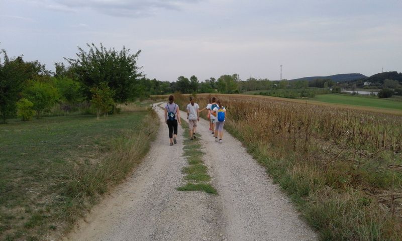 Az elmélkedésre javasolt gondolatok: a Köszönöm Uram…., Bocsátsd meg Uram! s Ígérem Uram…. voltak. A csatolt fotó tanúsága szerint a gyermekek áhítattal és elmélyülten ténylegesen zarándokoltak. Az út legnehezebb szakasza következett az új Károlyi kilátóhoz és onnan leereszkedve a Gaja–szurdokba. Érdekesség volt, hogy a kilátó tetejéből jól látható volt zarándoklatunk végpontja, a Fehérvárcsurgói Víztározó túlsó vége. A lefelé meredek, köves és keskeny szakaszon mindenki egymást segítve sikeresen leért, mely útszakasz egyben lecke is volt a gyermekeknek, mert alig van fontosabb egy hosszabb gyalogos-zarándokúton, mint a zarándoktársak egymásra figyelése és segítése. A Gaja-patak megkapóan szép völgyéből kiértünk a pisztrángos tavas, büfés tisztásra, ahol a tervezettnél rövidebb pihenőt tartottunk, mert fél órával megtoldottuk az indulást a búcsú miatt és összeszedtünk egy kis késést.